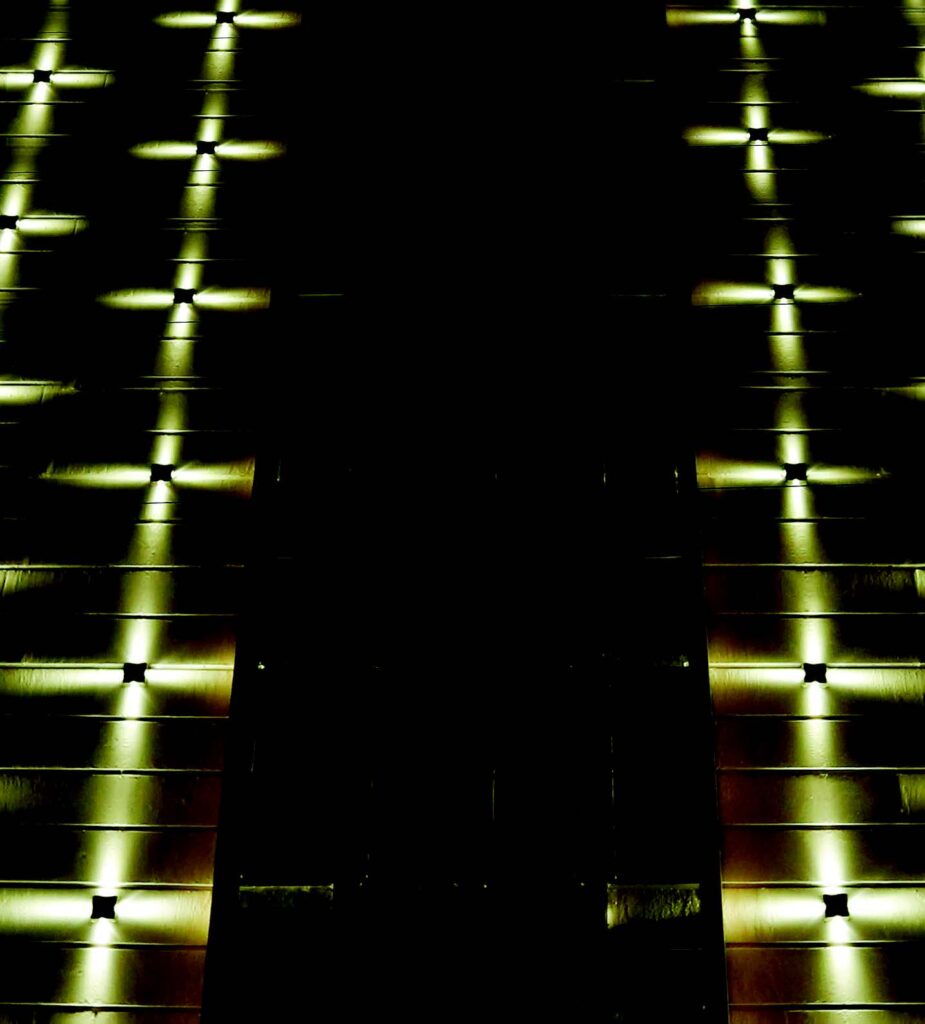 Defining architectural spaces with precision optics. Innovative light sources and precise narrow lenses combine to form a high impact and low maintenance lighting system.