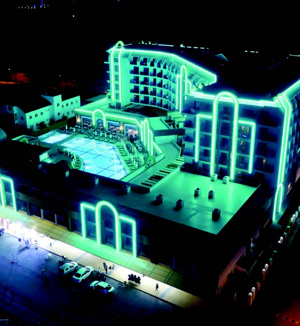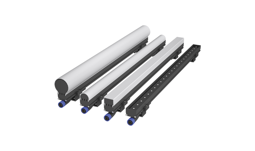 Encapsulated linear pixel luminaires designed to highlight the exceptional character of large-scale architectural structures and spaces such as skyscrapers, stadiums, theme parks, bridges, airports, and shopping malls.
